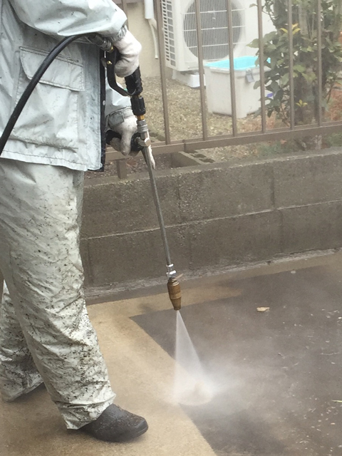 施工内容: ・擁壁・ブロック塀 約32㎡ ・土間コンクリート 約8㎡ ・外壁 約60㎡ ・勝手口他 約20㎡ 施工時間:4.5時間
